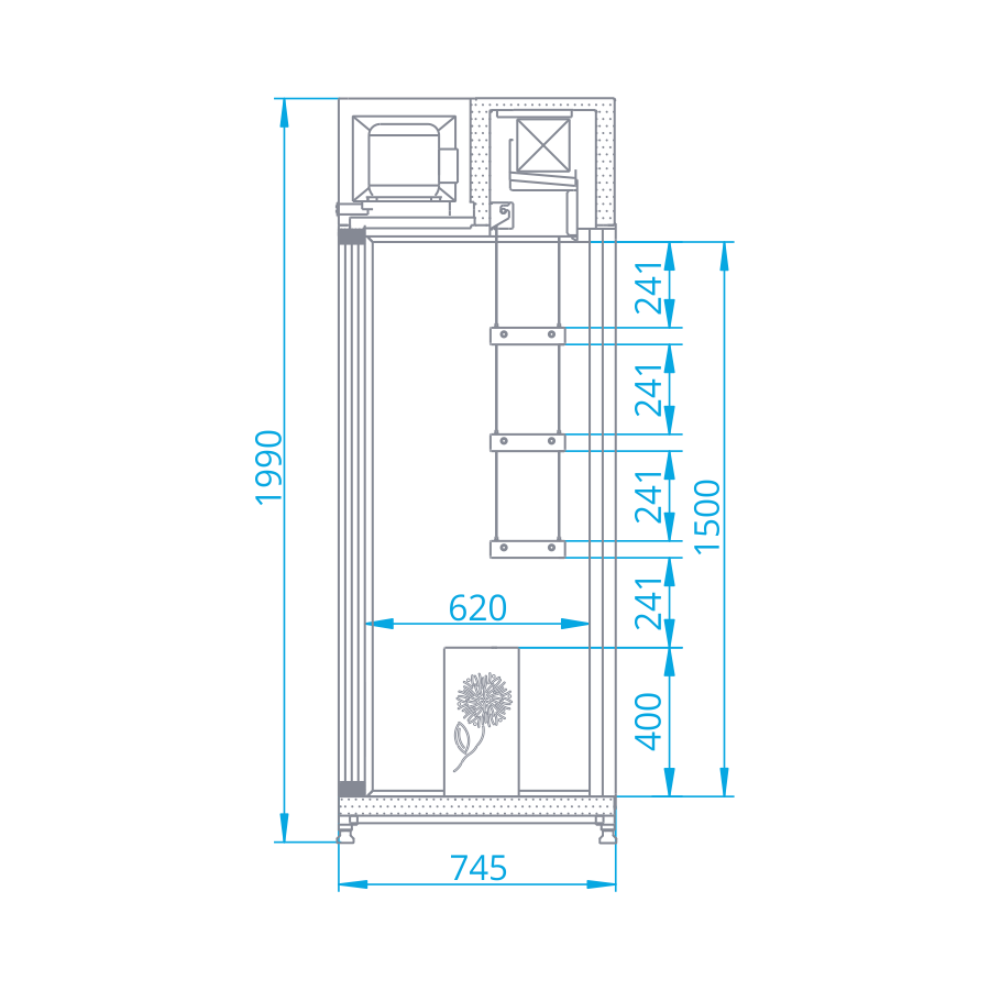 SCh-AK - podest 40cm - 2 polki - RAPA rzut boczny