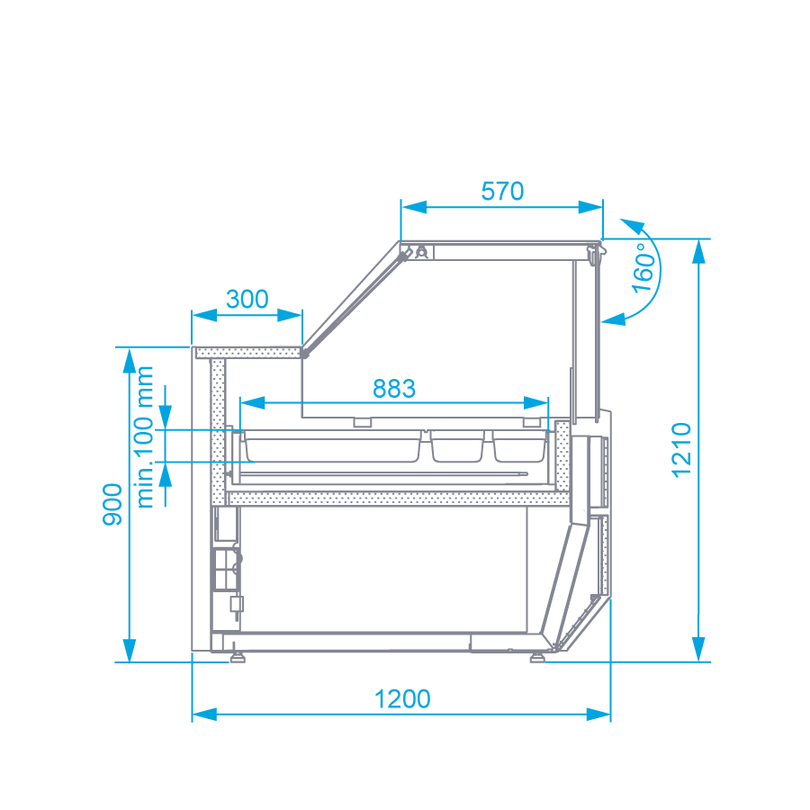 SCh-AK - podest 40cm - 3 polki - RAPA rzut boczny