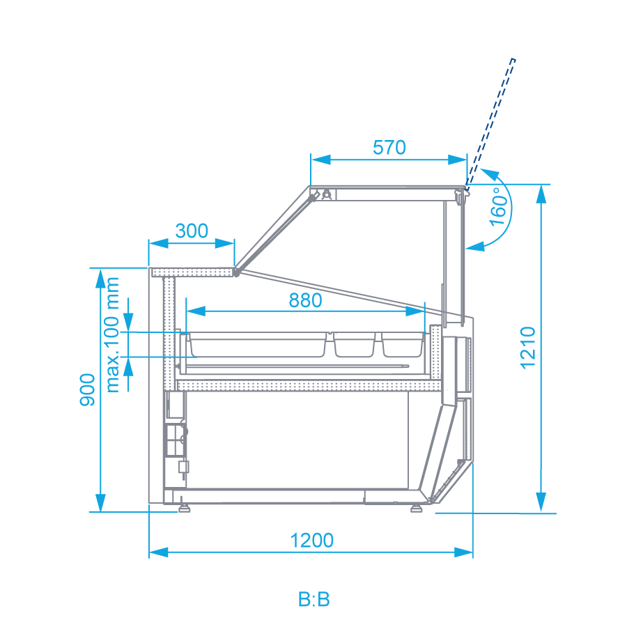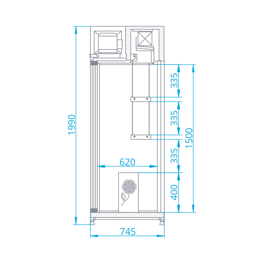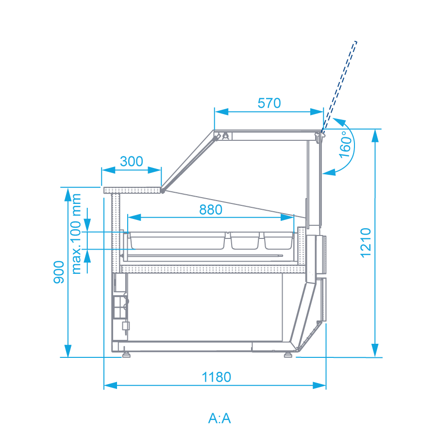 SCh-AK - podest 40cm - 2 polki - RAPA rzut boczny