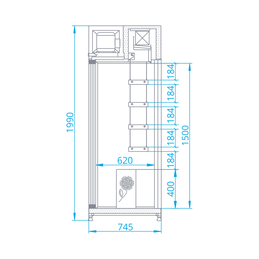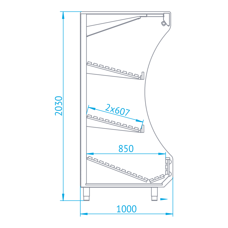 SCh-AK - podest 40cm - 2 polki - RAPA rzut boczny
